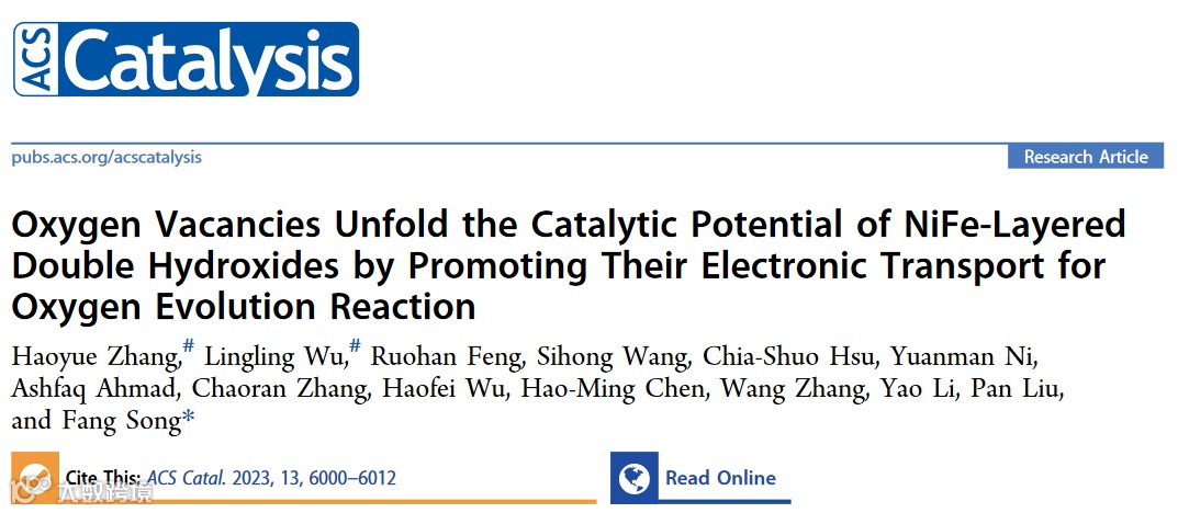 基于此,来自上海交通大学的宋钫副教授团队,在国际知名期刊ACS Catalysis上发表题为“Oxygen Vacancies Unfold the Catalytic Potential of NiFe-Layered Double Hydroxides by Promoting Their Electronic Transport for Oxygen Evolution Reaction”的研究论文。
