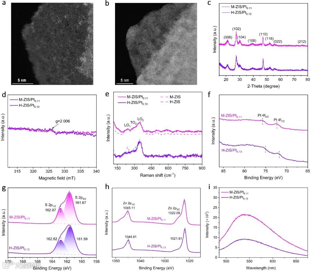 图4:通过结构表征对H-ZIS/Pt0.13高光催化活性的机理进行了研究。。