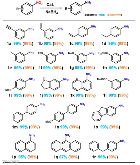 图5. Au@La-ZIF-90催化硝基底物加氢