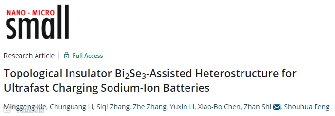 基于此,吉林大学的施展教授在国际知名期刊Small上发表题为“Topological Insulator Bi2Se3-Assisted Heterostructure for Ultrafast Charging Sodium-Ion Batteries”文章。该文章开发了基于拓扑绝缘体Bi2Se3的异质结硒化物,其展现了杰出储钠快充能力,超薄的Bi2Se3纳米片具有丰富的电荷快速转移表面,作为穿入材料内部的电子平台,大大降低了电荷传输阻力,提高了整体导电性。同时,两种硒化物之间丰富的界面促进了Na+的迁移,也提供了额外的活性位点。这项工作预计将为进一步探索拓扑绝缘体和先进的异质结构提供了有效策略。