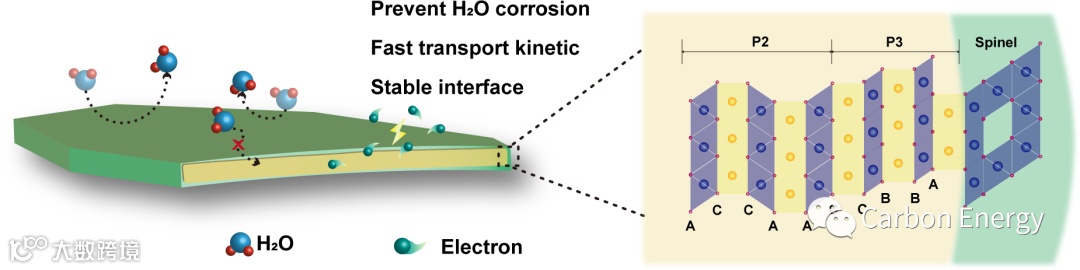 1、提出基于原位尖晶石界面重构的表面晶格匹配工程的概念,助力实现高稳定性的钠基层状氧化物正极。