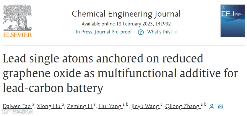 基于此,浙江大学张启龙教授团队在国际知名期刊Chemical Engineering Journal上发表了题为“Lead single atoms anchored on reduced graphene oxide as multifunctional additive for lead-carbon battery”的研究文章。该文章针对铅碳电池在大规模能源存储、可再生能源转换、混合动力汽车等领域应用面临问题,开发了一种可协同解决电池负极板硫酸盐化、“浮碳”、析氢失水等问题的多功能添加剂。