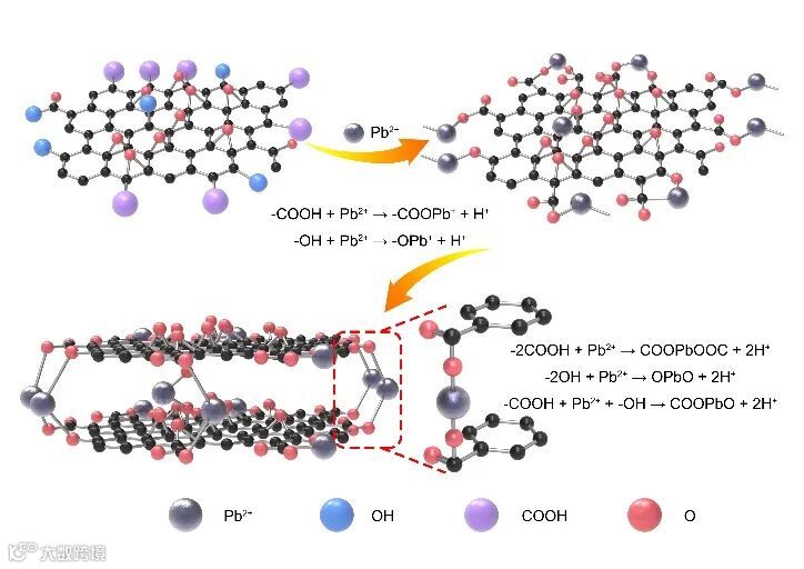 以无水甲醇为溶剂,2-甲基咪唑(C4H6N2)为pH调节剂促进氧化石墨烯对铅离子的吸附。首先利用铅离子(Pb2+)和氧化石墨烯(GO)上的含氧官能团(-COOH,-OH)间的静电相互作用将Pb2+锚定在GO上,然后再用硼氢化钠还原GO,最终得到锚定在还原氧化石墨烯上的铅单原子(PbSAs@rGO)。