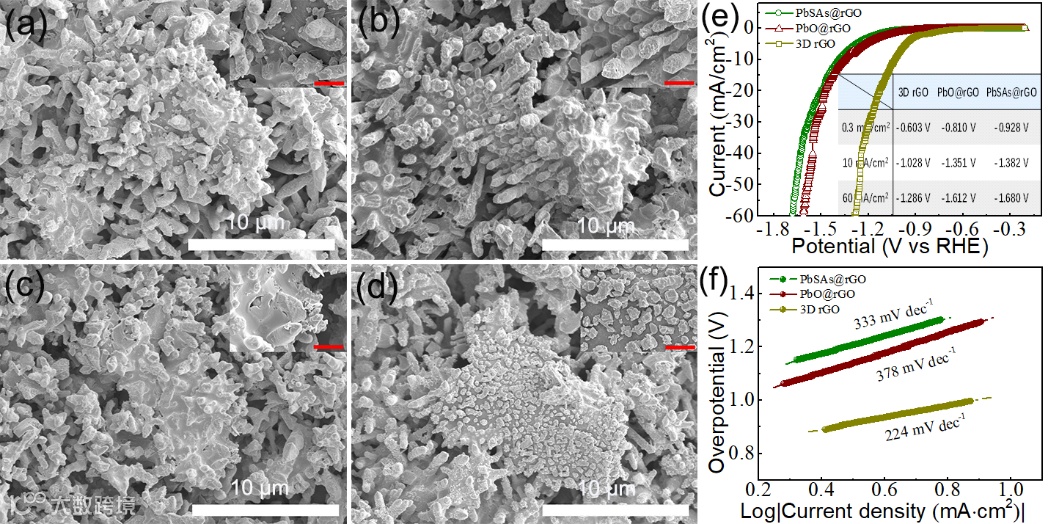 通过将PbSAs锚定在还原氧化石墨烯表面,可以极大的降低HER速率。此外,PbSAs可以作为晶种诱导Pb分枝的三维生长,使含PbSAs@rGO添加剂的NAM的比表面积(SSA)约为对照样品的2.3倍。而SSA的增加有助于延迟负极板的硫酸盐化。同时,PbSAs可以增强还原氧化石墨烯对负活性物质(NAM)的亲和力,使电化学还原反应以更快的速度进行。
