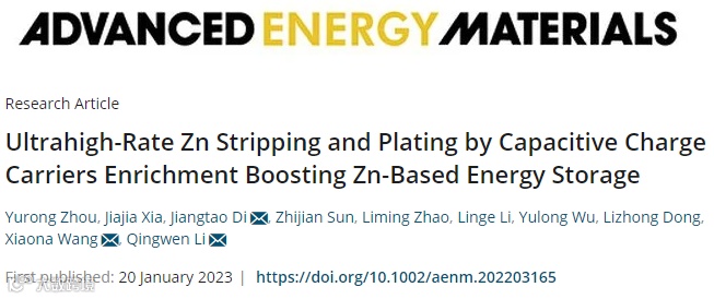 水系锌基储能设备因其具有高能量密度、低成本、安全无毒的特点受到人们的广泛关注。其中锌负极作为其核心,有着高的电极电位(标准电极电位为-0.763 V)和高的比容量(水系中820 mAh g-1)的优势,然而锌负极的循环稳定性较差,利用率低,反应动力学,而且存在着严重的锌枝晶生长以及副反应问题。这使得锌负极使用寿命较短并难以支撑高倍率及高深度放电,成为制约锌基储能发展的关键因素。