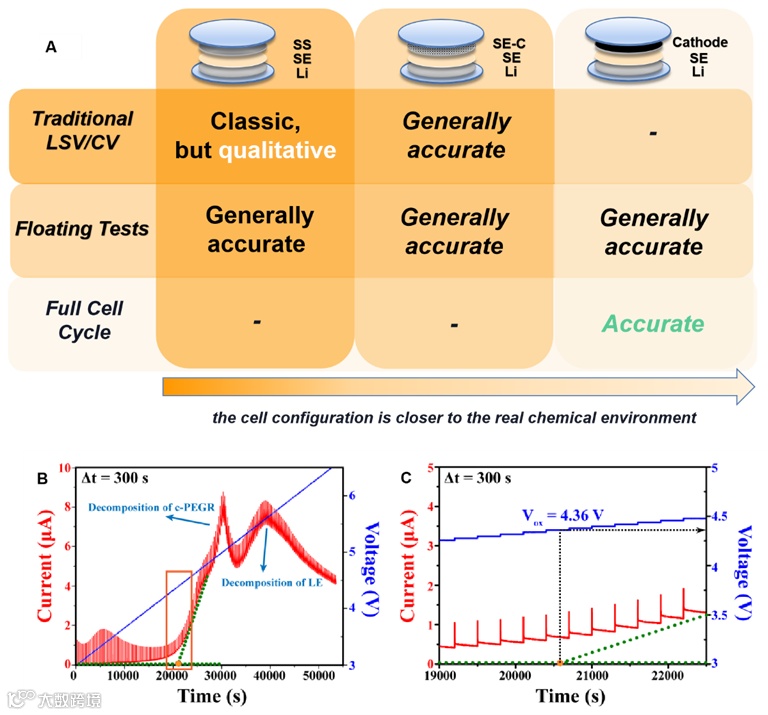 高压固态电解质的概念,常见测试方法与高压分解机制。文章针对高压稳定的基础概念与常见理论/实践模型进行了讨论(图2)。此外,还对常用高压稳定固态电解质测试方法进行了概述,为更准确、更规范评估高压稳定固态电解质提出了见解。
