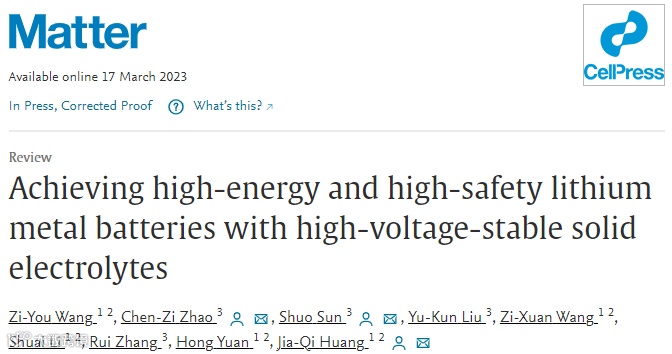 Zi-You Wang, Chen-Zi Zhao*, Shuo Sun*, Yu-Kun Liu, Zi-Xuan Wang, Shuai Li, Rui Zhang, Hong Yuan, Jia-Qi Huang*. Achieving high-energy and high-safety lithium metal batteries with high-voltage-stable solid electrolytes,