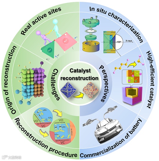 图4. 锂硫电池催化剂重构研究面临的挑战和发展前景示意图。