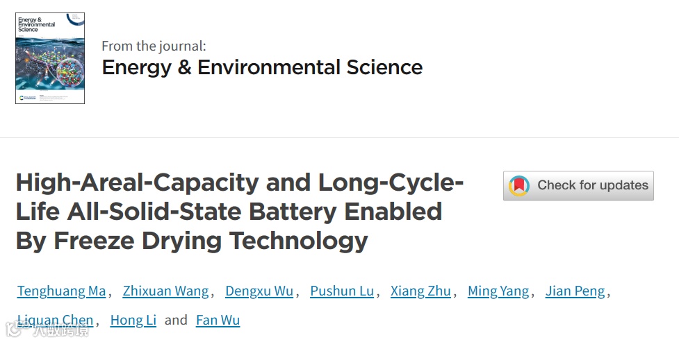 该成果以“High-Areal-Capacity and Long-Cycle-Life All-Solid-State Battery Enabled By Freeze Drying Technology ”为题发表在国际知名期刊Energy& Environmental Science(IF=39.714),第一作者为中国科学技术大学硕士生马腾欢。