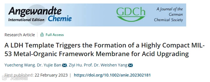 基于此,中国科学院大连化学物理研究所杨维慎研究员、班宇杰副研究员团队,在国际化学领域顶级期刊Angewandte Chemie International Edition上发表题为“A LDH Template Triggers the Formation of a Highly Compact MIL-53 Metal-Organic Framework Membrane for Acid Upgrading”的研究论文。通过模板诱导法制备出高度致密且稳定的金属-有机框架MIL-53分子筛膜,实现有机酸脱水精制,与精馏相比分离能耗节省高达77%。