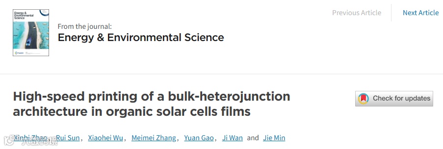 基于此,武汉大学闵杰教授在国际知名期刊Energy & Environmental Science上发表题为“High-speed printing of a bulk-heterojunction architecture in organic solar cells films”的研究论文。该工作中,研究人员采用传统给受体共混(BHJ型)刮涂涂覆工艺,通过掺杂少量低分子量的PM6(PM6L)实现了在保持活性层体系器件性能的同时活性层的高速涂覆制备。