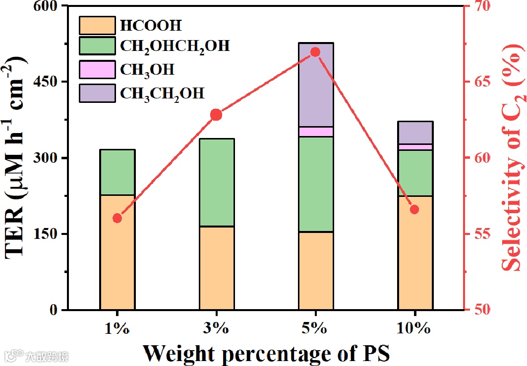 图5. CdS/VS-MoS2-PS光电阴极的电子转换速率(TER)和C2产物选择性。