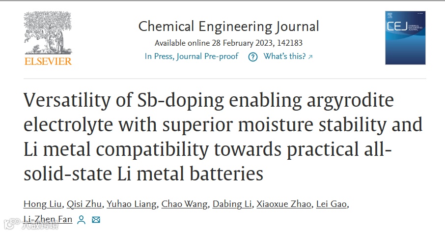 基于此,北京科技大学范丽珍教授课题组,在国际知名期刊CEJ上发表的题为“Versatility of Sb-doping enabling argyrodite electrolyte with superior moisture stability and Li metal compatibility towards practical all-solid-state Li metal batteries”的研究论文。