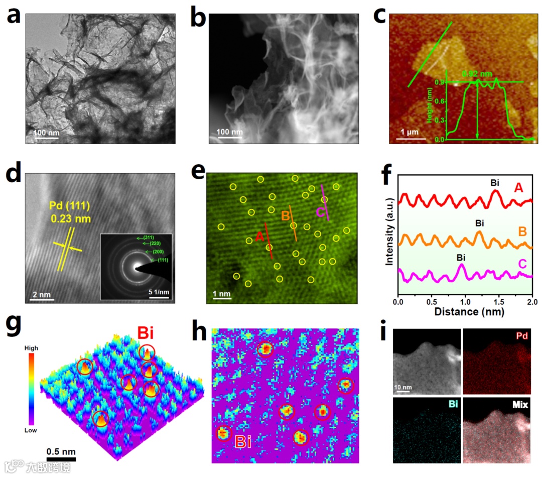 基于此,兰州交大褚克教授和河南大学马东伟教授合作在《Advanced Functional Materials》上发表了题为“Single-Atom Bi Alloyed Pd Metallene for Nitrate Electroreduction to Ammonia”的研究文章。