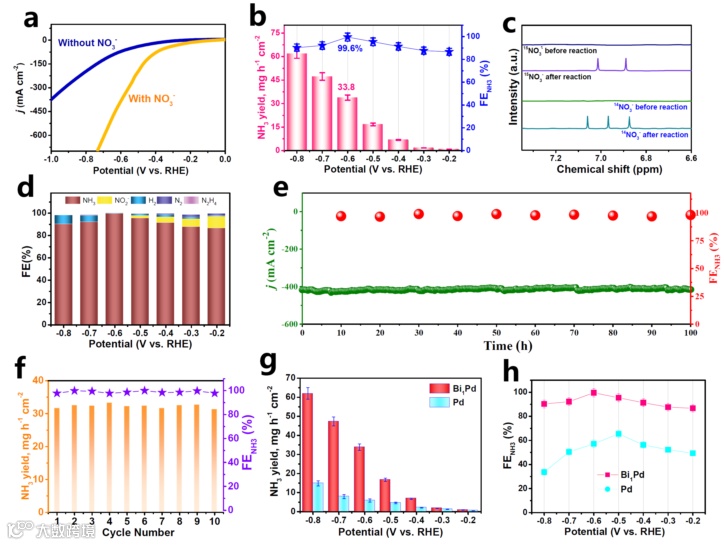 图3. Pd和Bi1Pd的NO3RR性能测试