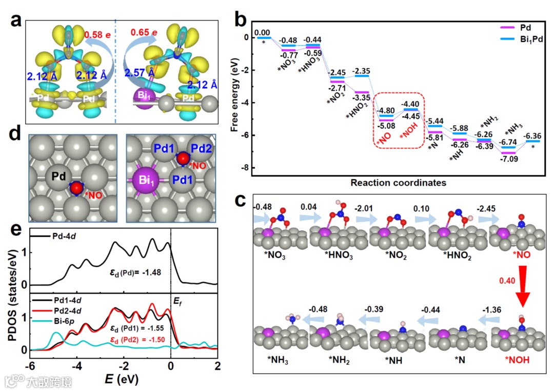 图4. Pd和Bi1Pd的NO3RR性能的DFT理论计算