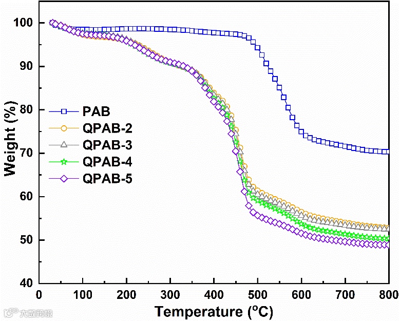 图5. PAB和QPAB-x膜的TGA谱图。