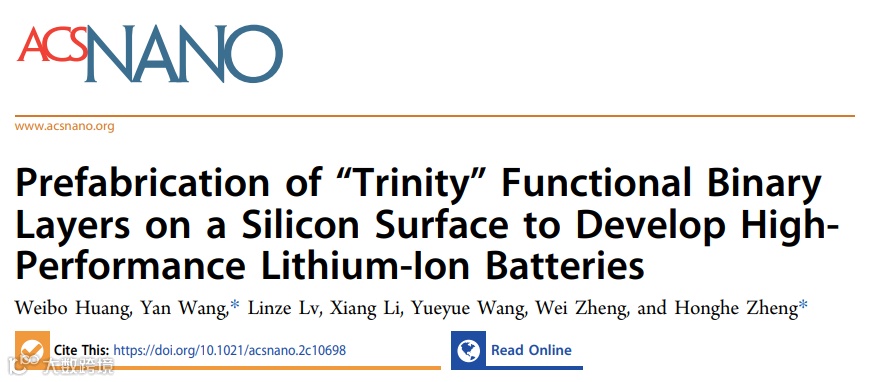 Weibo Huang, Yan Wang, Linze Lv, Xiang Li, Yueyue Wang, Wei Zheng, and Honghe Zheng, Prefabrication of “Trinity” Functional Binary Layers on a Silicon Surface to Develop High-Performance Lithium-Ion Batteries, ACS Nano.