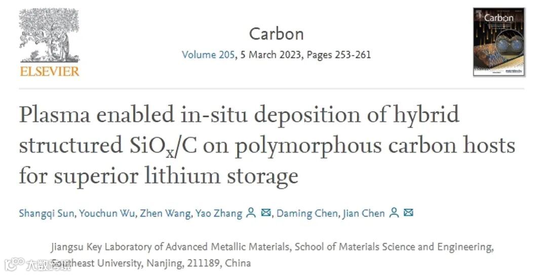 基于此,来自东南大学的陈坚教授与张耀研究员合作,在国际知名期刊Carbon上发表题为“Plasma enabled in-situ deposition of hybrid structured SiOx/C on polymorphous carbon hosts for superior lithium storage”的研究文章。该研究文章利用柔性可控的活性屏等离子体制备了一系列具有高ICE和比容量的SiOx/C复合材料,并为制备高性能硅碳负极提供了新的思路和方法。