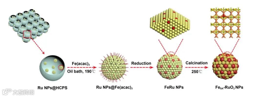 图1. FeSA-RuO2/HPCS样品的合成过程示意图。