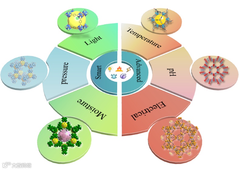 图1. 刺激响应MOF材料的优点和接受环境刺激的响应类型