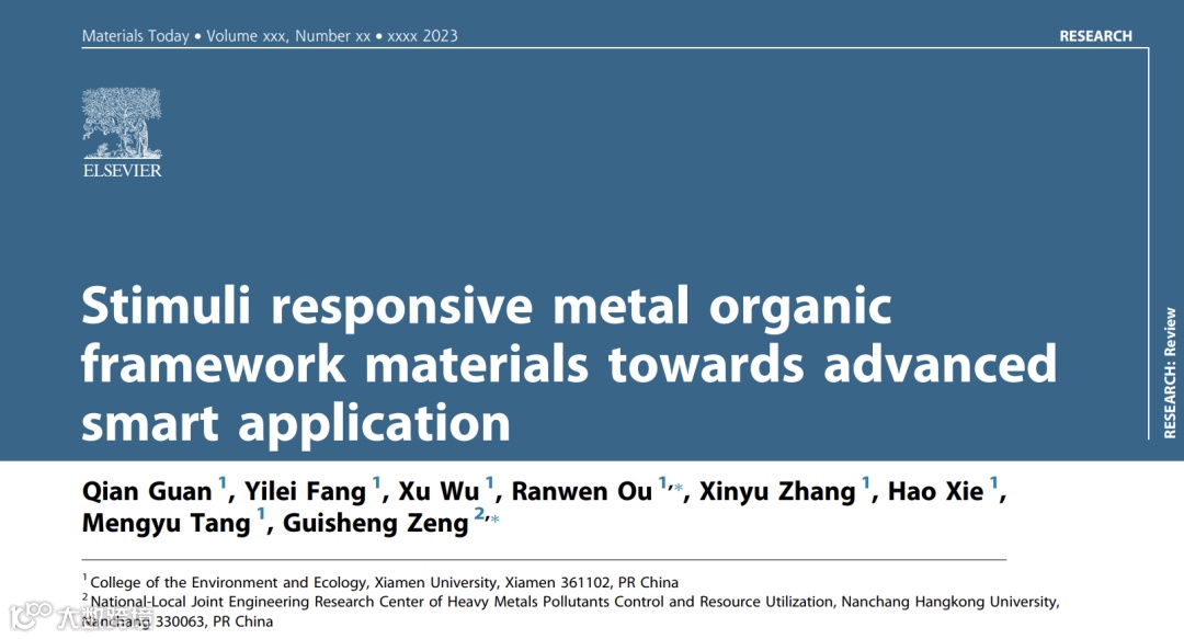 基于此,厦门大学环境与生态学院水处理技术与水质安全团队区然雯课题组联合南昌航空大学环境与化学工程学院曾桂生教授在材料领域综合期刊Materials Today上发表了题为“Stimuli responsive metal organic framework materials towards advanced smart application”的综述论文。
