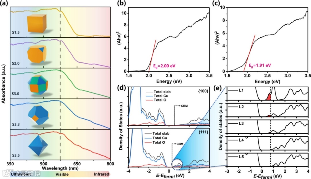 图4. MPCMs的吸光特性和在实验与理论计算下材料的带隙结构