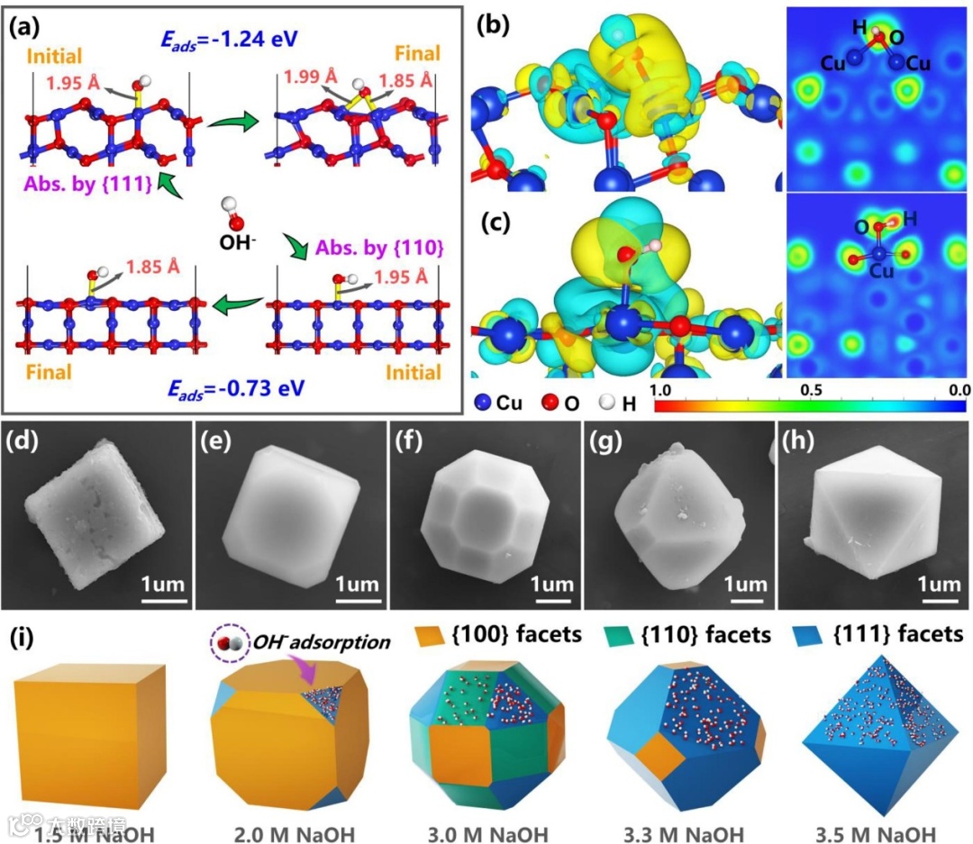 采用原位沉积法,制备了以正二十烷为核、Cu2O为壳层的相变微胶囊。通过控制壳层的形成动力学,成功实现了不同晶面主导下的材料形貌的转变。所合成的微胶囊具有光滑清晰的表面和良好的尺寸和形貌。密度泛函理论计算的结果阐明了MPCM形貌演变的机理,由于碱溶液中OH-对晶面吸附所带来的表面重构可以有效降低表面能,高能晶面得以稳定并随着OH-浓度的增加具有更高的表面占比,材料形貌随之进行改变。