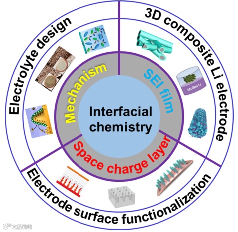本篇观点针对锂金属负极的界面化学,战略性地总结了电极/电解质界面和溶剂化鞘的形成机制。同时回顾了目前调控界面化学的进展,包括但不限于电解质设计、电极表面功能化、复合锂电极等。最后还概述了这个新兴领域面临的挑战和未来机遇,有助于加速锂金属负极的研究及实际应用。