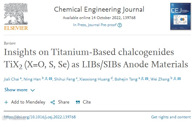 基于此,来自上海工程技术大学大学的唐博合金教授在国际知名期刊Chemical Engineering Journal上发表题为“Insights on Titanium-Based chalcogenides TiX2 (X=O, S, Se) as LIBs/SIBs Anode Materials”的观点文章。