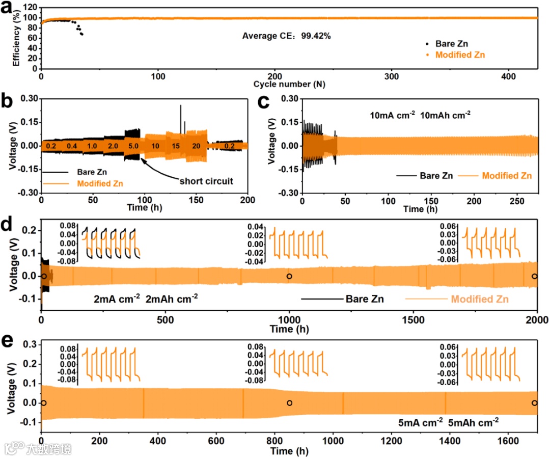 要点三:类SEI修饰层稳定锌负极快速大容量循环的实验表征