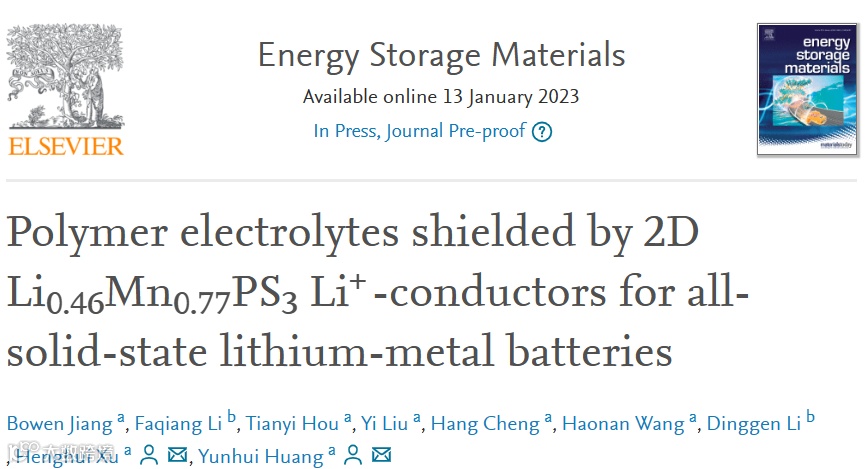 Bowen Jiang, Faqiang Li, Tianyi Hou, Yi Liu, Hang Cheng, Haonan Wang, Dinggen Li, Henghui Xu, Yunhui Huang, Polymer electrolytes shielded by 2D Li0.46Mn0.77PS3 Li+-conductors for all-solid-state lithium-metal batteries, Energy Storage Materials (2023),
