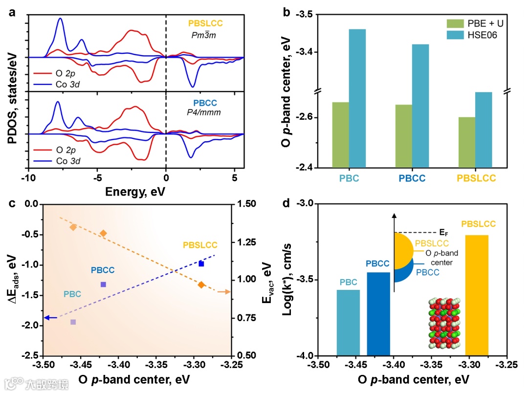 Figure 5.高熵钙钛矿电极氧反应活性来源的理论理解