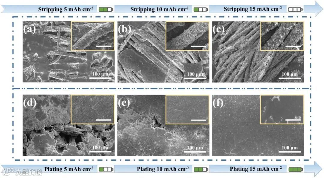 图6. Li-ZMO@CC在沉积/剥离过程中的形貌演化分析。