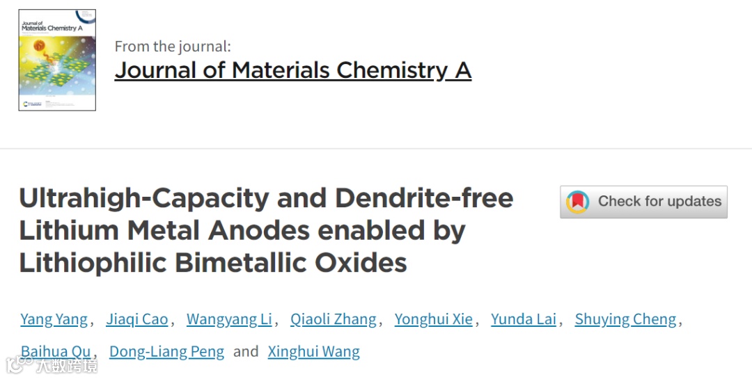 亲锂双金属氧化物实现超高容量和无枝晶锂金属阳极