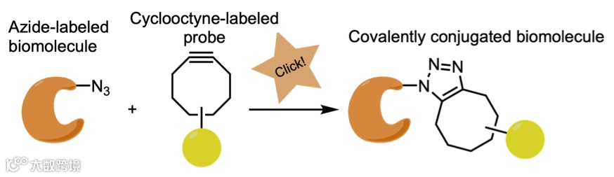 环辛炔分子中的 C≡C 三键存在着较大的张力,很容易与叠氮基发生反应,从而得以实现探针基团与目标分子的偶联