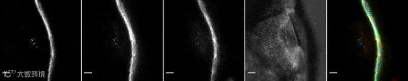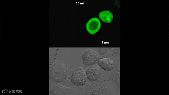 Source: Wang, J., Liu, Y., Liu, Y. et al. Nature 569, 509–513 (2019). https://doi.org/10.1038/s41586-019-1188-1 胱天蛋白酶 3 被激活后,HeLa 细胞发生的程序性死亡(每一帧间隔为 2 分钟,时间起点为紫外光开始照射时)