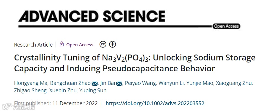 上述结果近日以“Crystallinity Tuning of Na3V2(PO4)3: Unlocking Sodium Storage Capacity and Inducing Pseudocapacitance Behavior”为题发表在知名期刊Advanced Science 2022, 2203552上。马宏扬博士为该论文的第一作者,赵邦传研究员和白金博士后为本论文的通讯作者。