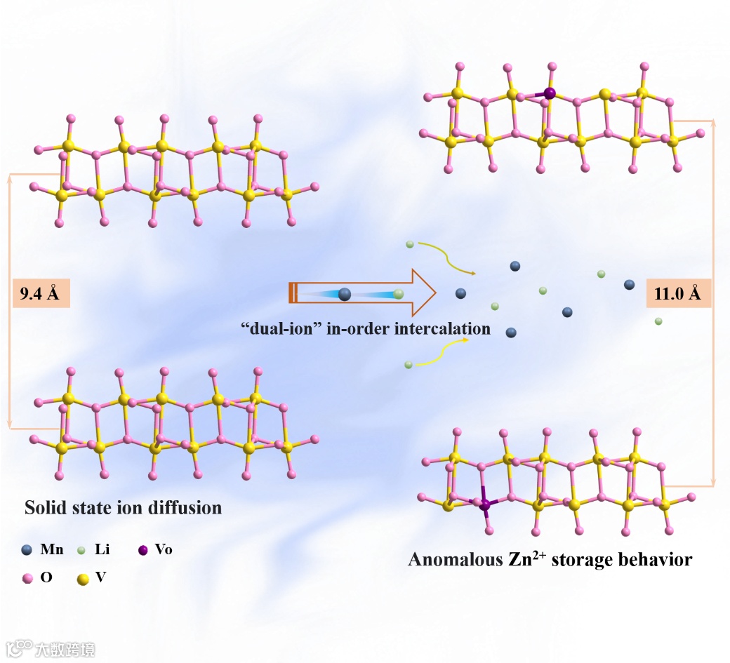 图1. “双离子顺序”插层策略连续扩大层间距引起储锌机理转变示意图。