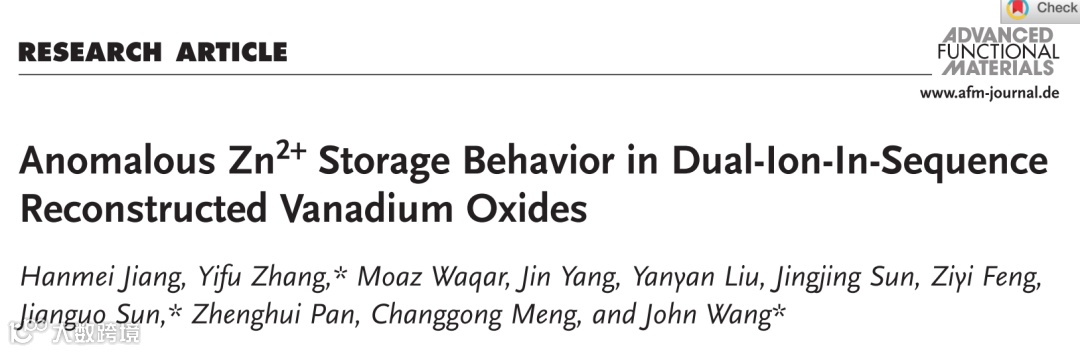 大连理工孟长功、张依福、NUS John Wang/孙建国《Adv. Funct. Mater.》:双离子顺序插层重构钒氧化物中Zn2+的反常存储行为