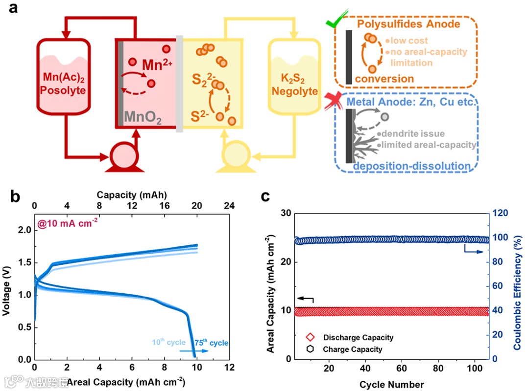 由于硫和锰在地壳中储量丰富,是成本最低的活性物质之一,因此该系统可以实现 $11 kWh–1 的超低电解液成本(基于已实现的容量),该工作为低成本,长时储能应用提供了一条实用途径。