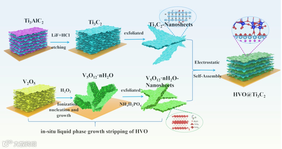 图1. HVO@Ti3C2异质结构的合成过程示意图