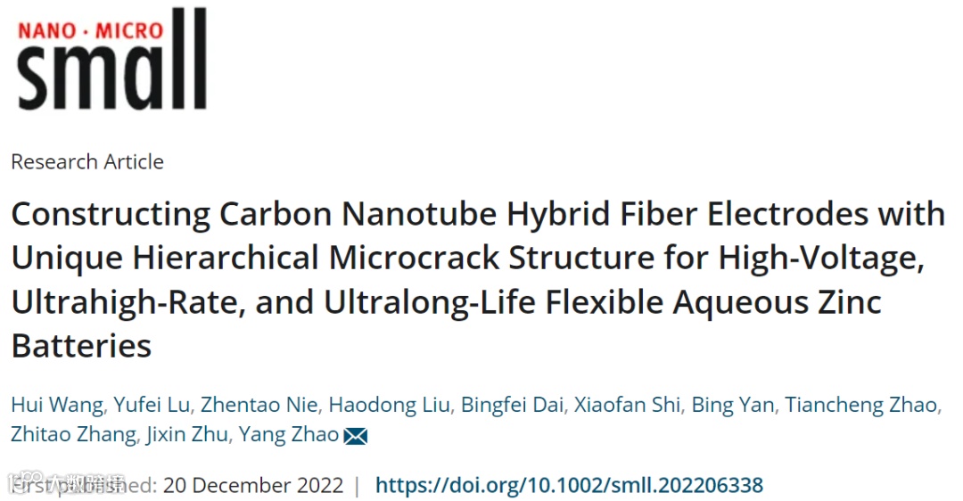 构建具有独特分级微裂纹结构的碳纳米管杂化纤维电极,助力高电压、超高倍率和超长寿命的柔性水系锌电池