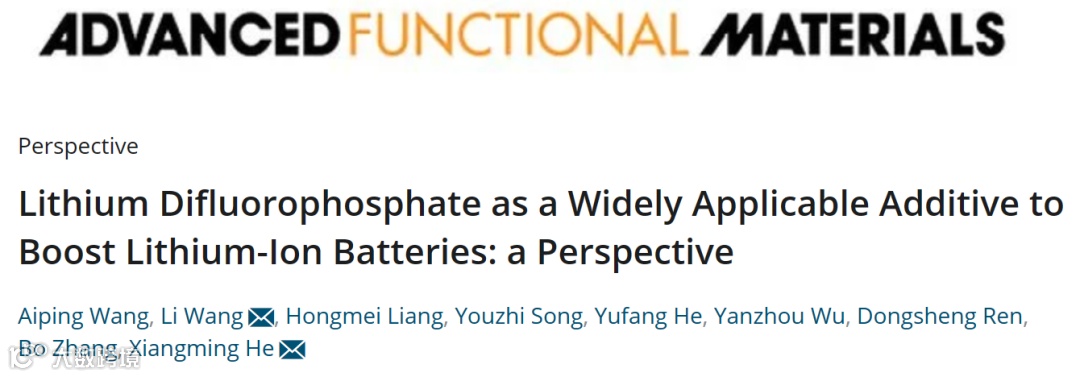 基于此,来自清华大学的何向明研究员何王莉副研究员在国际知名期刊Advanced Functional Materials上发表题为“Lithium Difluorophosphate as a Widely Applicable Additive to Boost Lithium-Ion Batteries: a Perspective”的观点文章。该观点文章以二氟磷酸锂(LiDFP)为例,分析了其工作机理,同时梳理了此类添加剂性能优化方案。