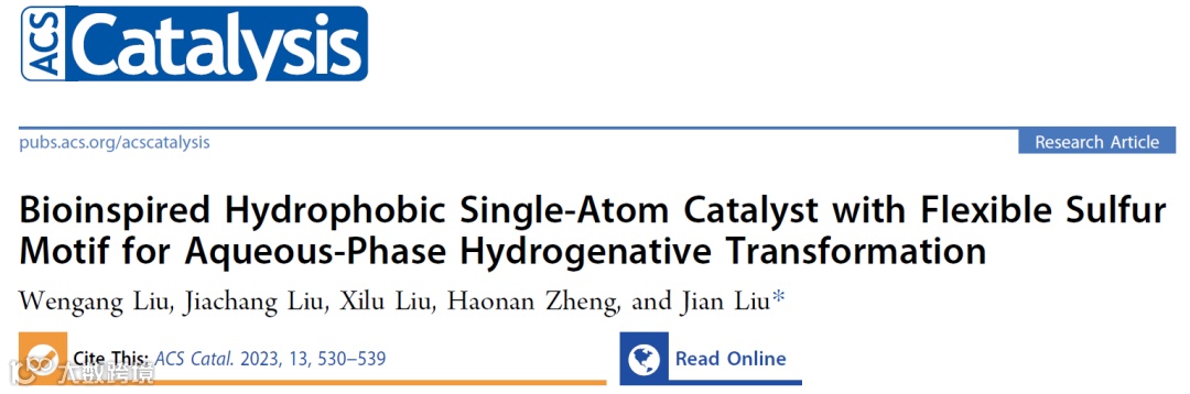 基于此,来自青岛科技大学的刘文刚副教授与中国科学院青岛生物能源与过程研究所的刘健研究员合作,在国际知名期刊ACS Catalysis上发表题为“Bioinspired Hydrophobic Single-Atom Catalyst with Flexible Sulfur Motif for Aqueous-Phase Hydrogenative Transformation”的研究文章。