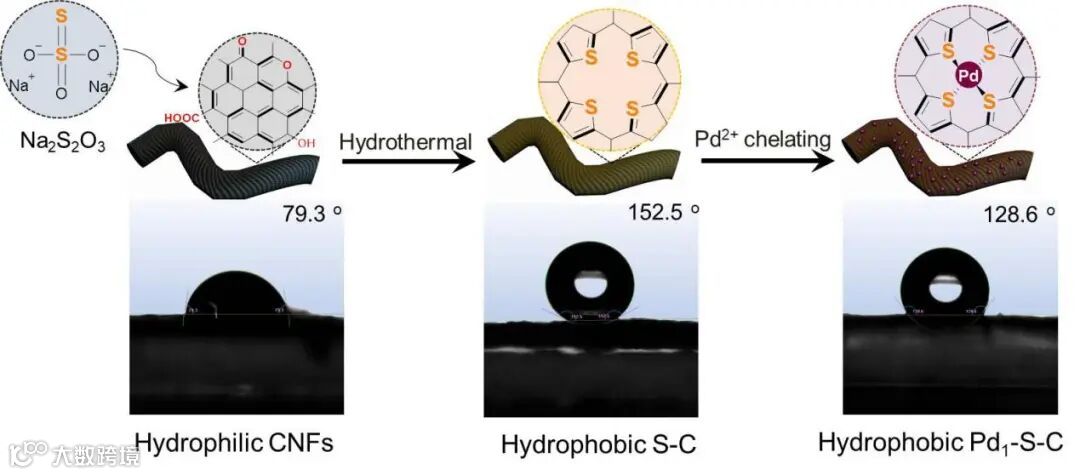 图2. 疏水Pd1-S-C单原子催化剂的制备示意图