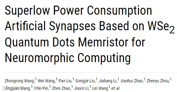 本文中,该成果以“Superlow Power Consumption Artificial Synapses Based on WSe2 Quantum Dots Memristor for Neuromorphic Computing”为题,在国际知名期刊《Research》在线发表。该杂志为JCR综合性期刊分区1区TOP期刊,最新影响因子为11.036,是《Science》自1880年创刊以来第一本合作期刊。