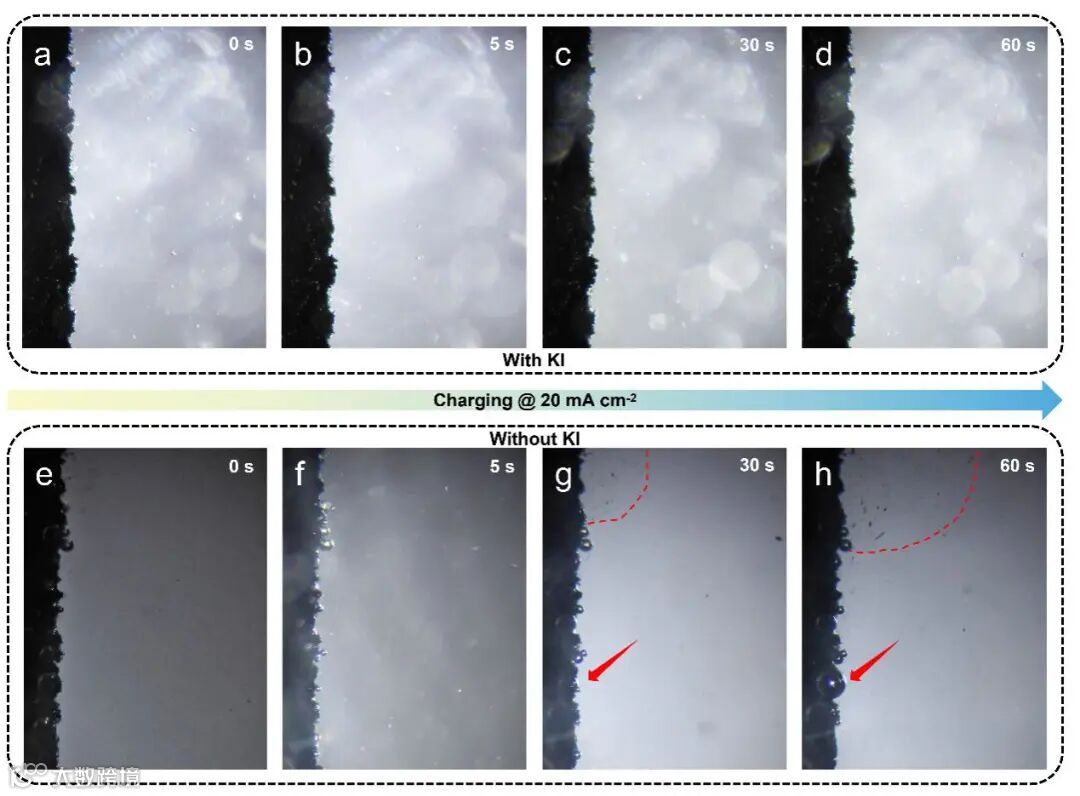 图2. 显微镜原位观察Pt/C电极表面的氧气泡生成情况