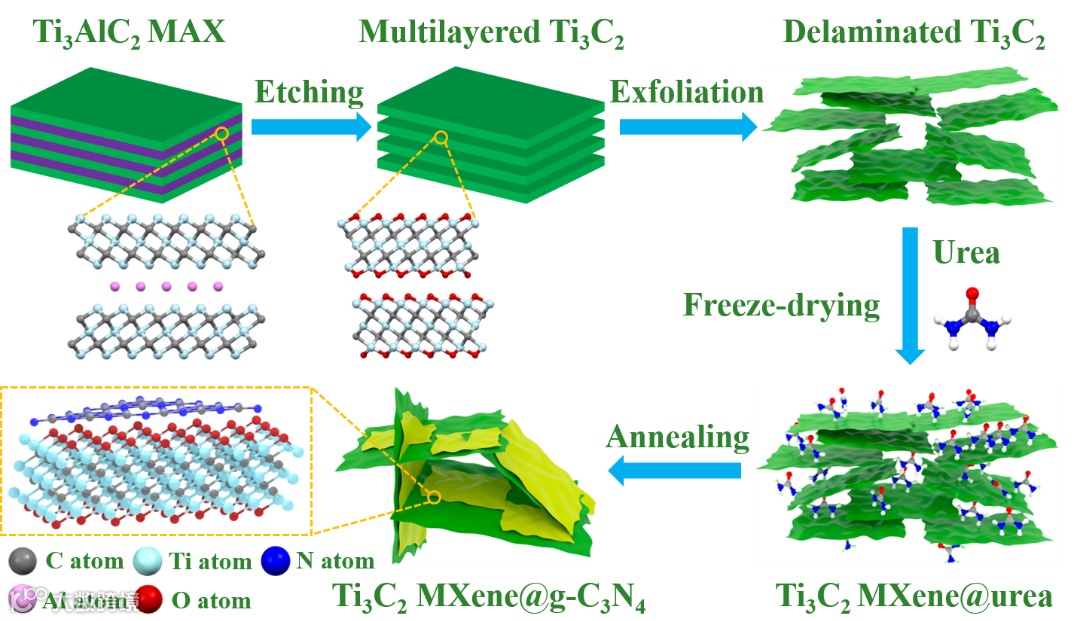 图1. Ti3C2 MXene@g-C3N4的制备过程示意图。