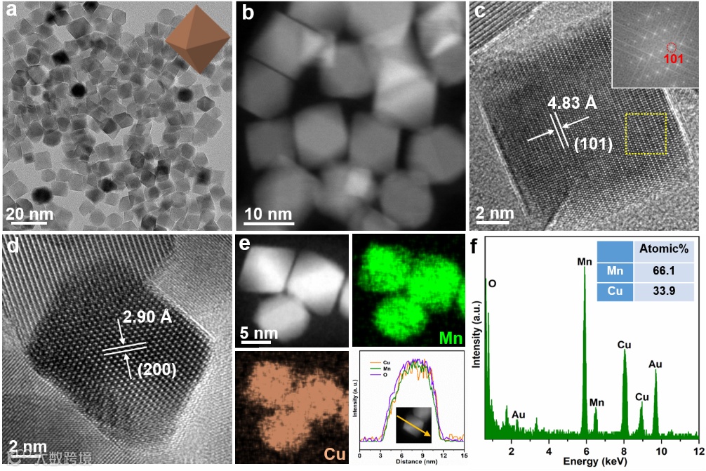 要点一:9 nm CuMn2O4尖晶石八面体纳米晶体的可控合成与结构表征